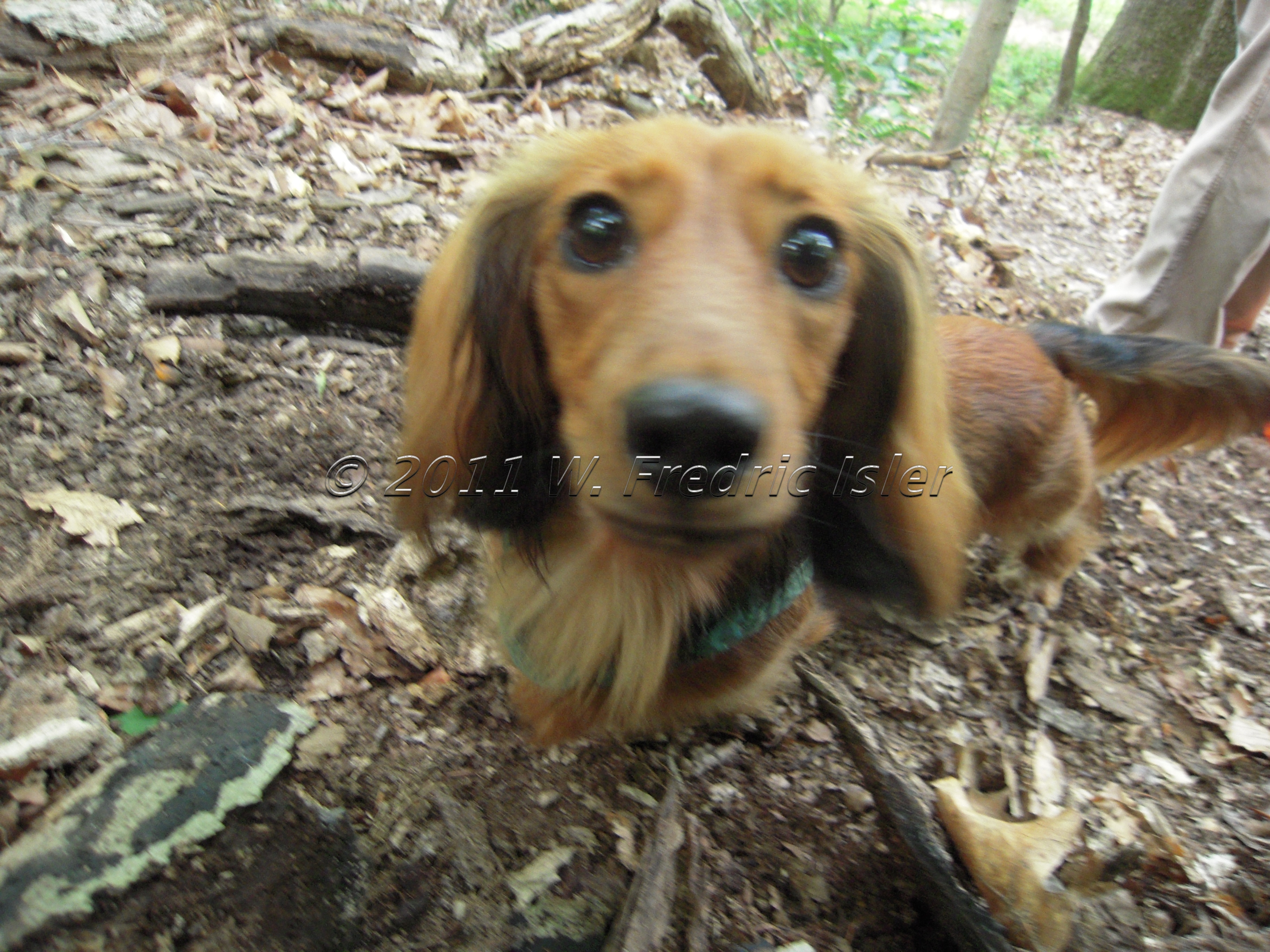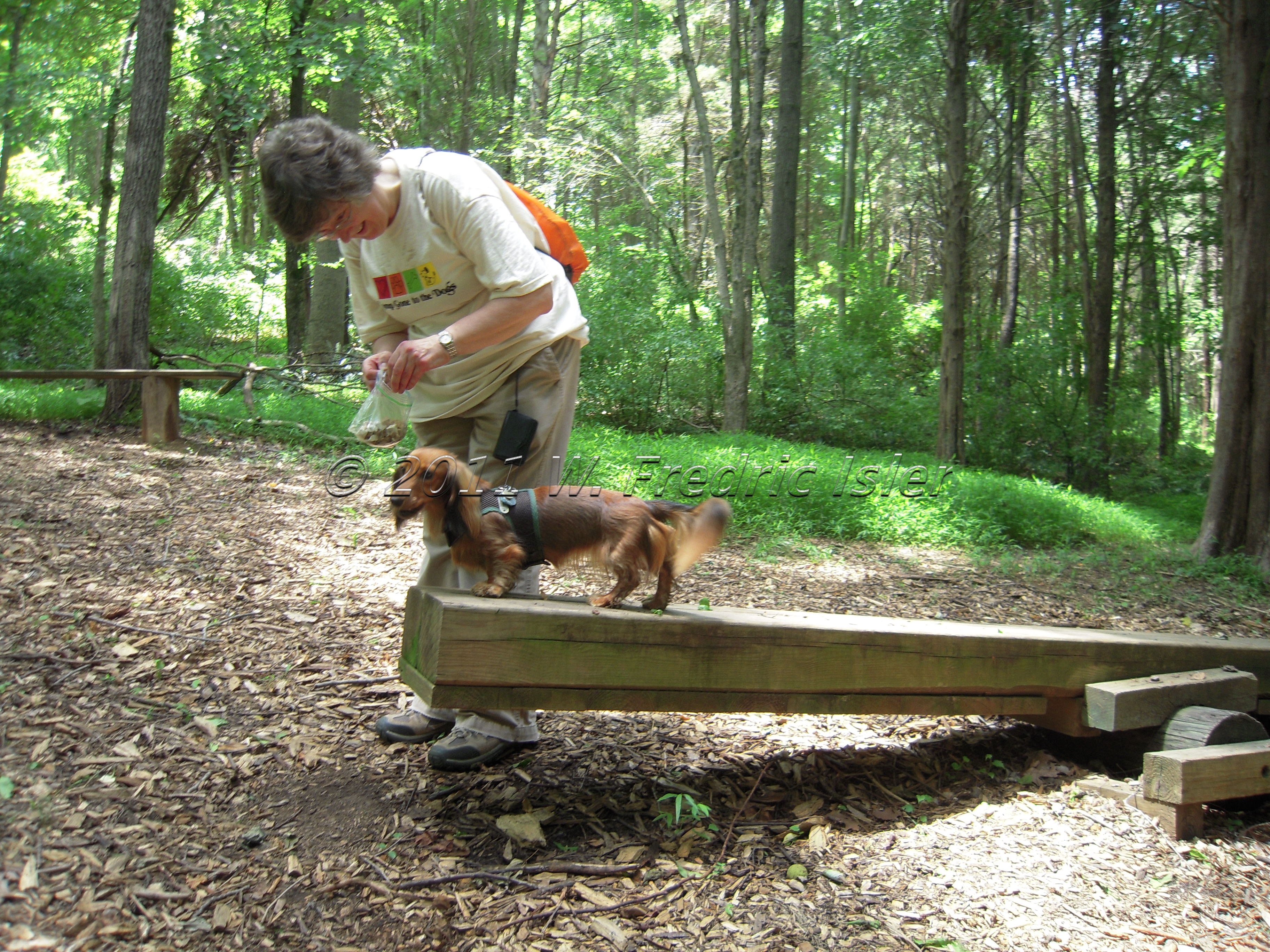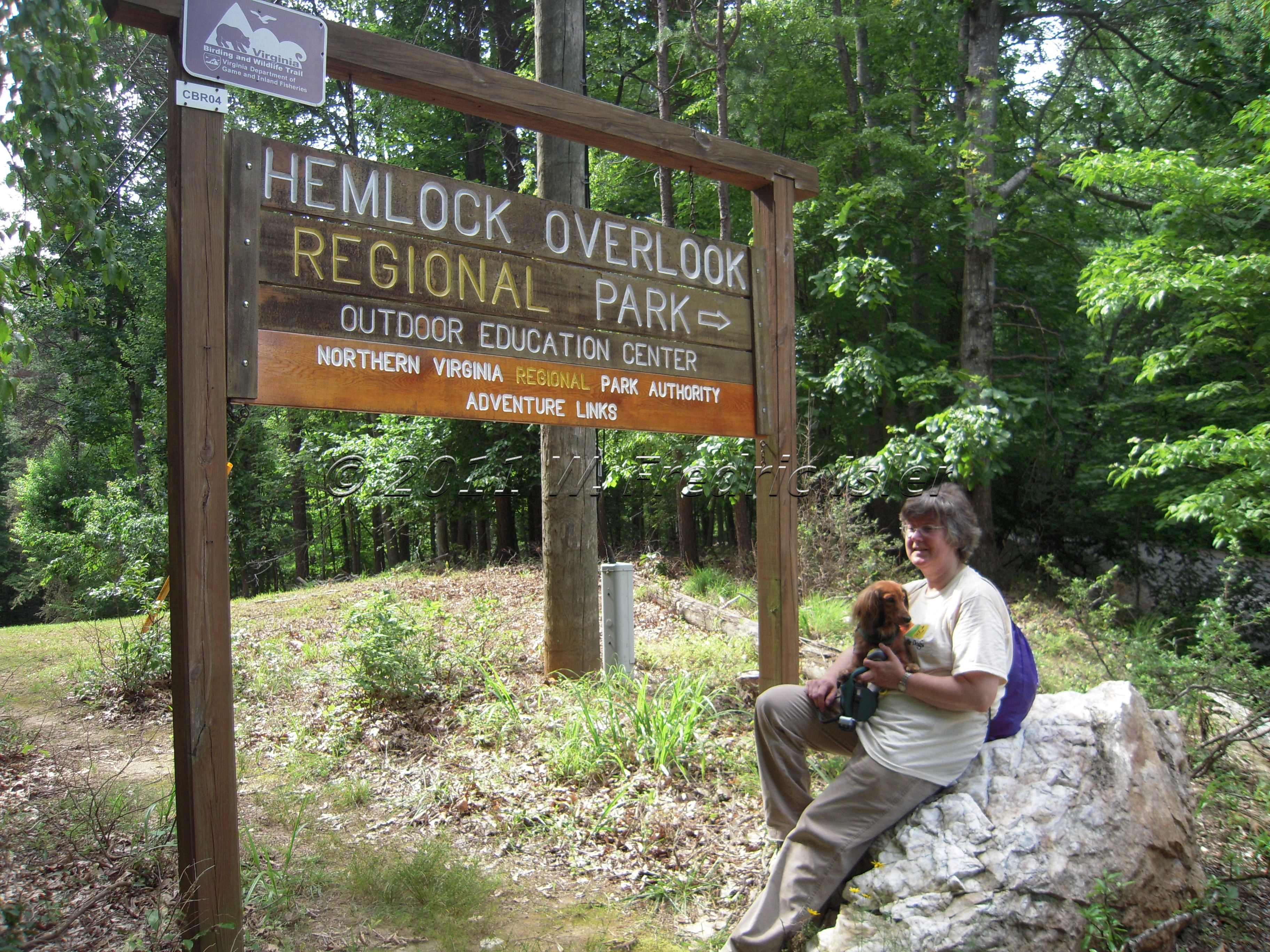 It sure does. If you go out looking for certain geocaches you’ll get some exercise without even thinking about it. If you go to a nice park full of geocaches you can walk around for hours having fun finding as many as possible. If you go to that park with a friend who belongs to an avid hiking superdog, well — it’s hard to think of a better way to spend a nice healthy day outside, and that’s exactly what dagdvm, her weiner dog Tilly and I did at Hemlock Overlook Regional Park in Fairfax County, Virginia on a fine Sunday in June.