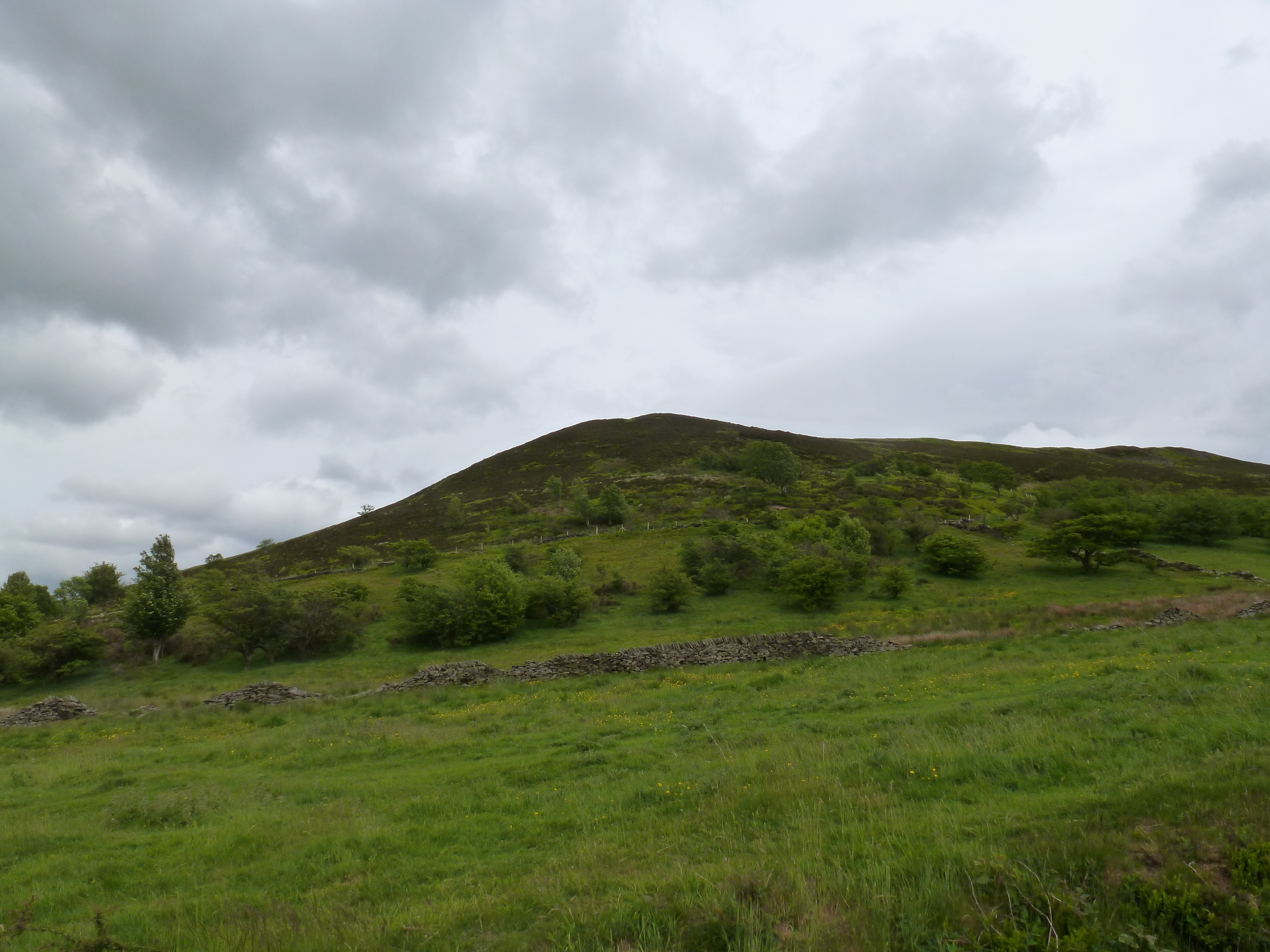 As the first real rain of our vacation started to fall — it would last for an hour or so — we took a little deviation. We wanted to continue following F.C. Green’s map north around the lower slopes of the unnamed nab pictured above and then southeast around the backside of Cheese Gate Nab to our starting point. However, we were uncomfortable with walking down the unmarked private drive the map led us to even though the drive functions as part of the public path around the two nabs.