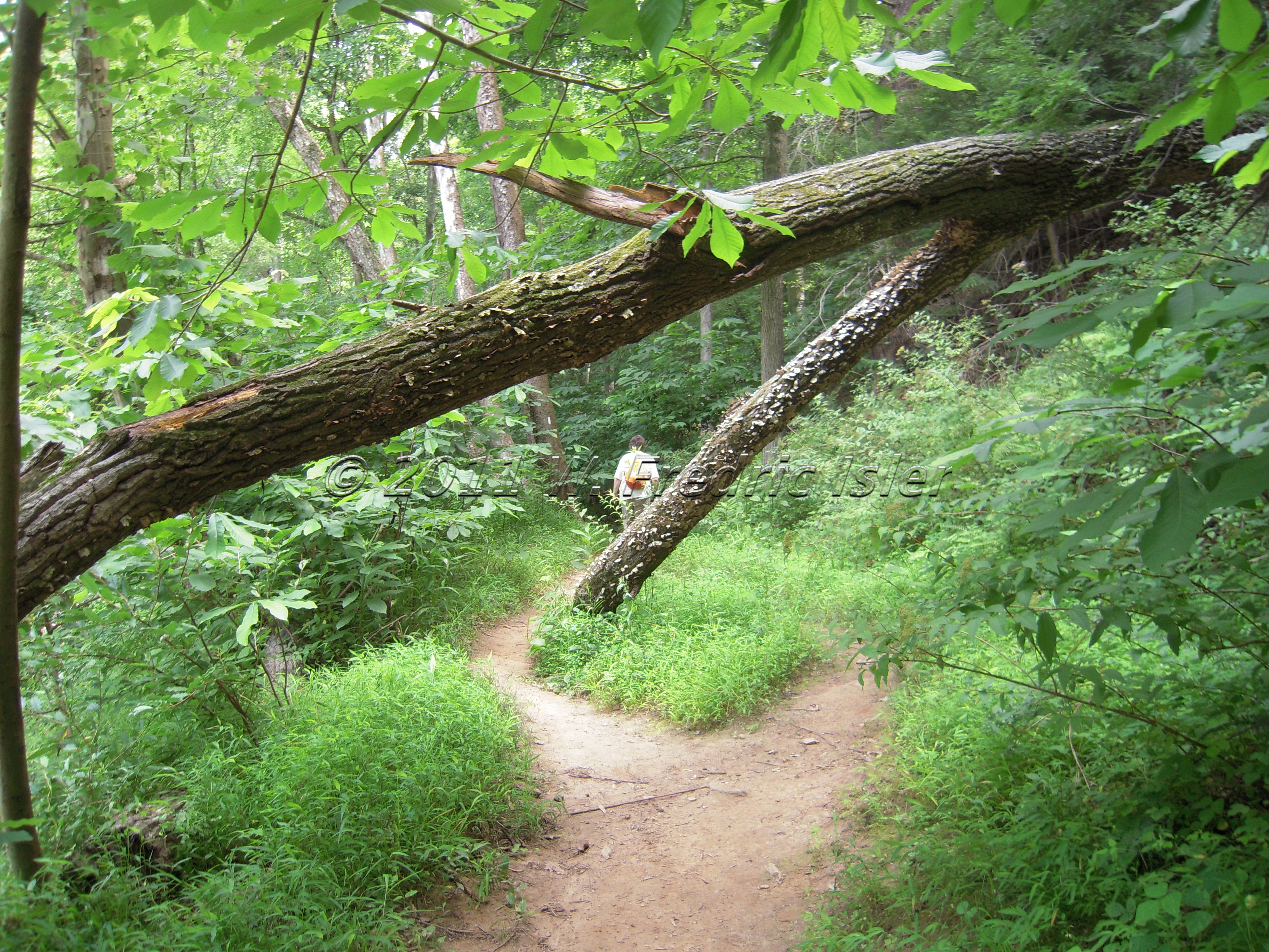 It sure does. If you go out looking for certain geocaches you’ll get some exercise without even thinking about it. If you go to a nice park full of geocaches you can walk around for hours having fun finding as many as possible. If you go to that park with a friend who belongs to an avid hiking superdog, well — it’s hard to think of a better way to spend a nice healthy day outside, and that’s exactly what dagdvm, her weiner dog Tilly and I did at Hemlock Overlook Regional Park in Fairfax County, Virginia on a fine Sunday in June.